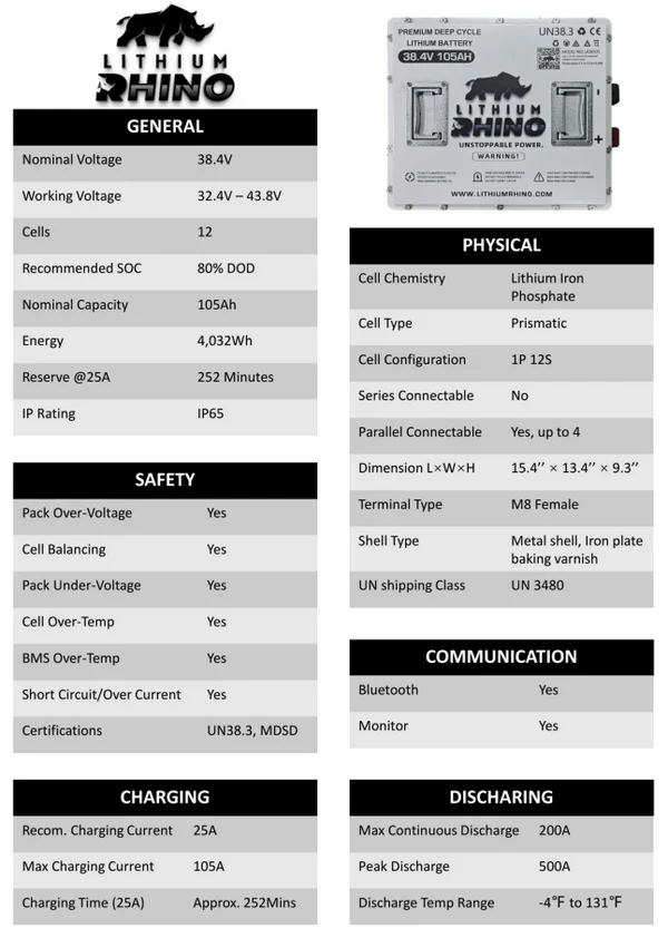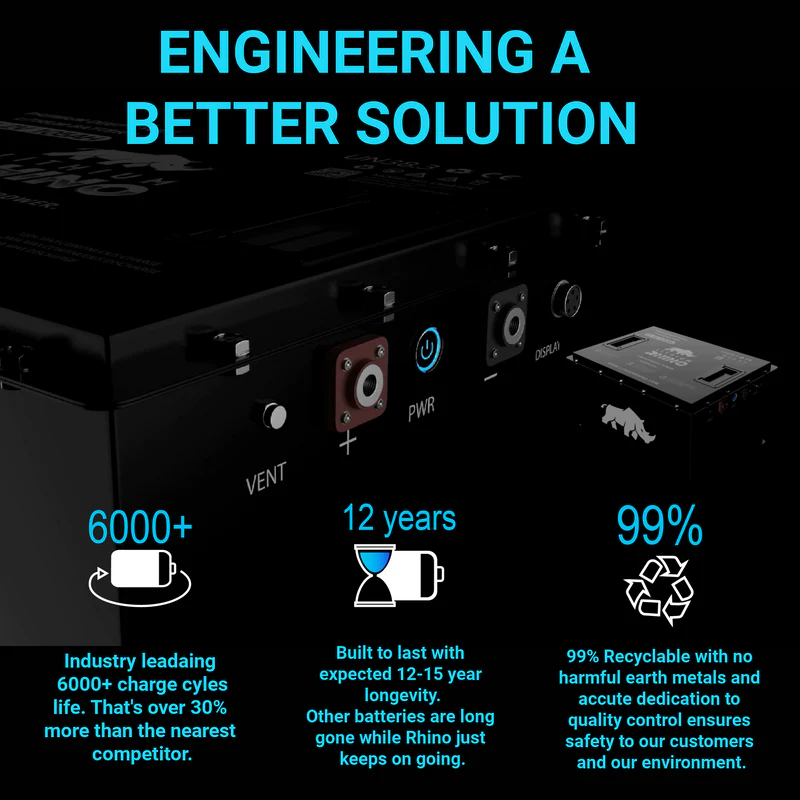 It’s time to ditch the lead-acids once and for all! Grab your Lithium Rhino and never buy another lead acid battery! Lithium Rhino has a 12 year life expectancy, and unmatched post purchase support & service.Â