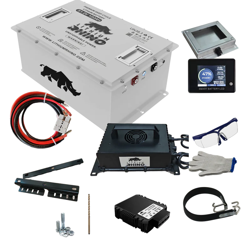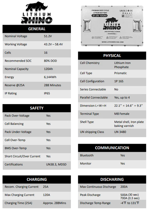 - Drive faster, further, and longer in minutes with our 120ah Lithium Rhino conversion kit! Our 120ah delivers 6144Kw of power and an extended drive range beyond our 105ah.Â