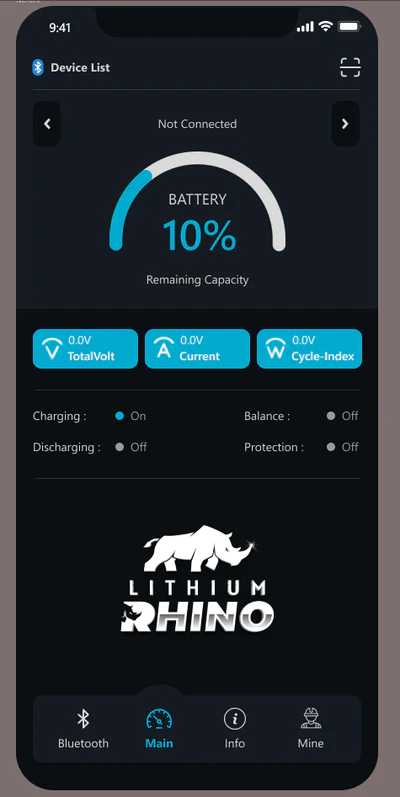 - Seemlesly connect your Rhino to our free mobile app to show battery life and other parameters right from your phone.