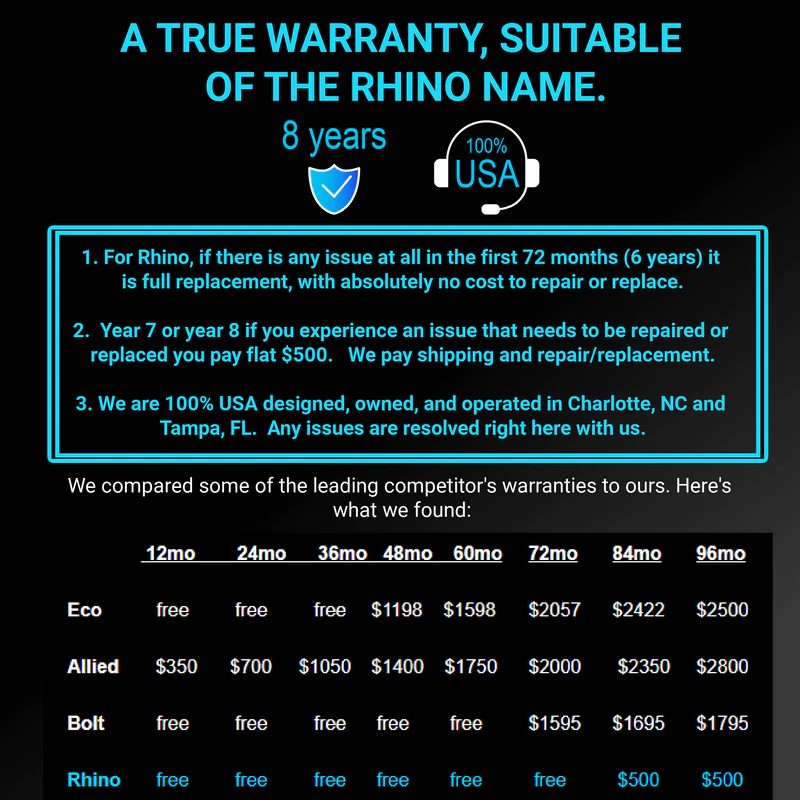 - 8 Year Warranty – 6 yr full replacement or repair +2 yr flat proration (You only pay $500 for years 7 and 8!)